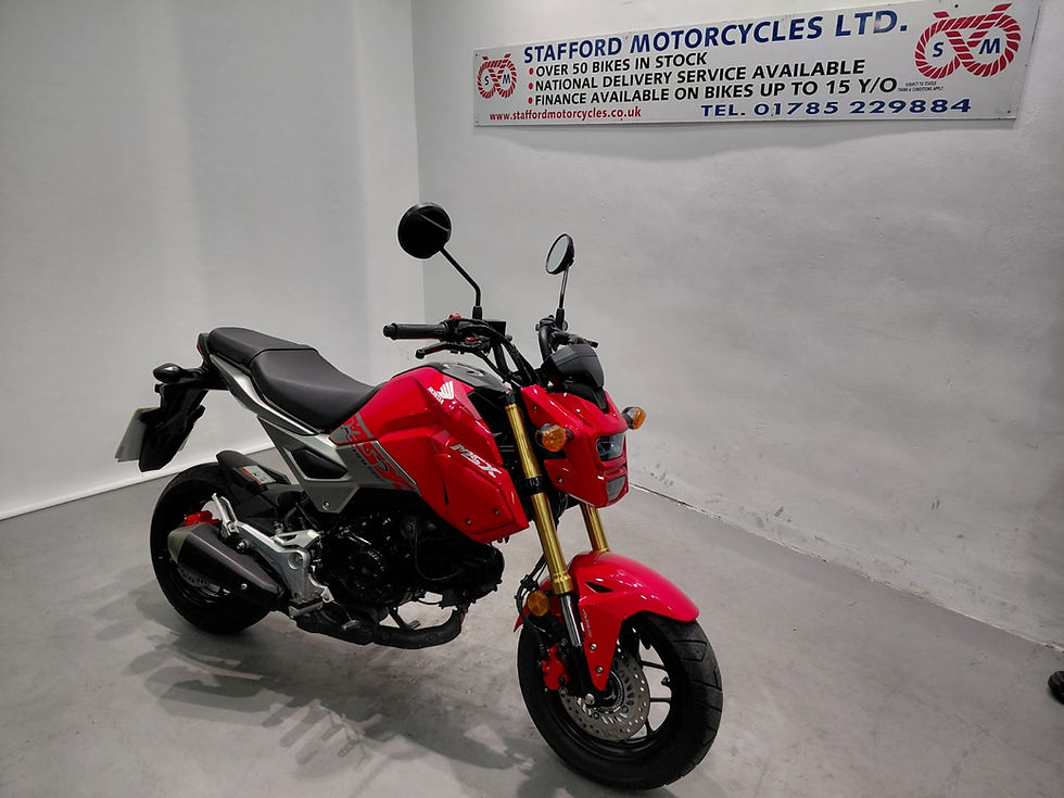 Stafford Motorcycles have been trading in Stafford since 2003. The business has continued to expand moving from humble beginnings to a small retail out let on Marston road Trading estate. Whilst at Marston Road, the business became established selling a wide range of motorcycles to customers both locally and throughout the UK. In August 2010 the business moved to a much more spacious showroom in St Patrick's Street. This move to St. Patrick's Street gave the business the opportunity to stock a more comprehensive range of quality used motorcycles, plus a large workshop to carry out repairs, MOTs and servicing including tyre fitting.