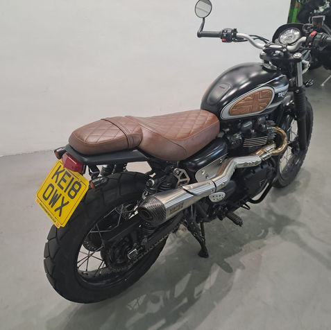 This Triumph Street Scrambler 900 was first registered in August 2018 and has 21195 miles on the clock. It has had 4 owners from new and comes with 2 keys. The owner’s and service manuals are included and the bike has a full service history. It has MOT until March 2026 and will be serviced before leaving our showroom. It is HPI clear and comes with our standard three months engine and parts warranty. The bike is fitted with a Datatool alarm, crash bungs, tail tidy, Remus exhaust and short levers. This bike is in stunning condition throughout.