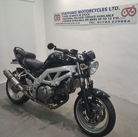 This Suzuki SV650 was first registered in October 2005 and has 33410 miles on the clock. It has had 10 owners from new and comes with 2 keys. The owner’s and service manuals are not included and so the bike does not come with any service history. It has MOT until October 2025. We will service the bike before it leaves our showroom. It is HPI clear. This bike came to us as a part exchange, and is priced to clear without warranty. This bike is in average condition and is fitted with new tyres, radiator guard, adjustable levers, sports exhaust, rear hugger and tail tidy.